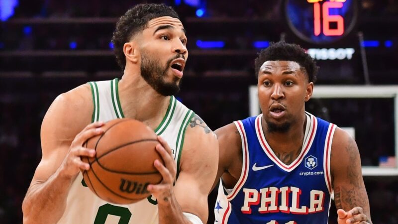 Celtics dominate Game 1 behind Tatum and Brown, while Embiid’s absence hurts 76ers; Maxey’s scoring surge sets up intriguing Game 2 battle in Boston.