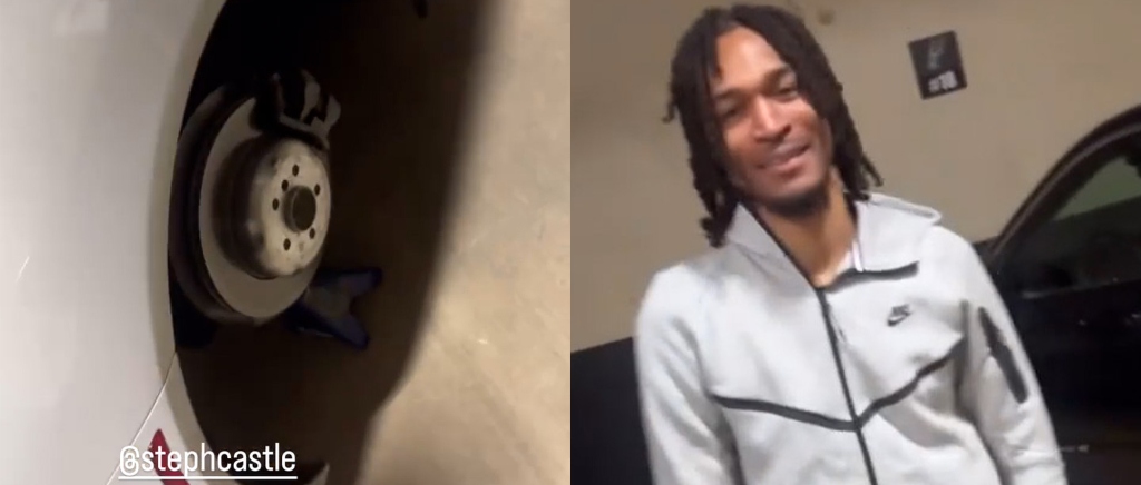 Instagram The rookie guard found his car on blocks after the Spurs win over the Mavs.