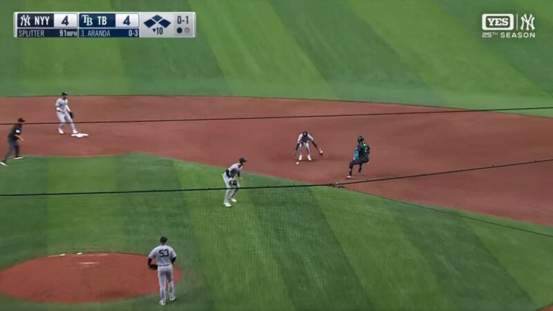 Jazz Chisholm Jr. commits a massive fielding lapse, allowing the Tampa Bay Rays to secure a walk-off win over the New York Yankees on Saturday.