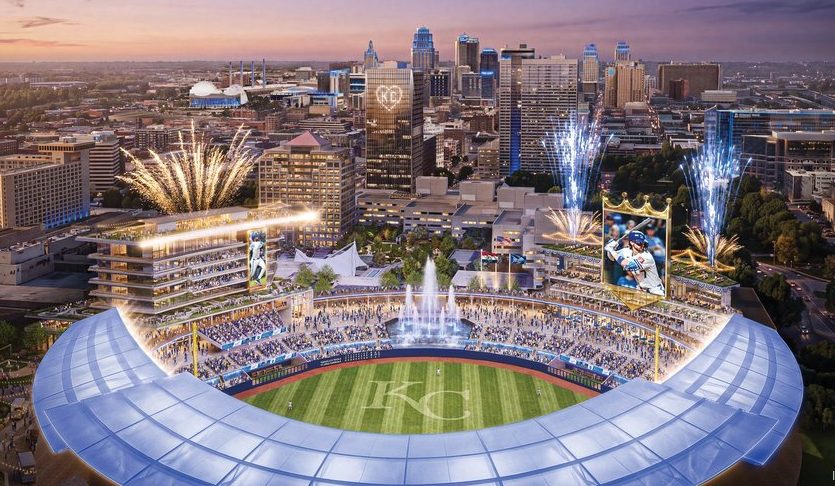 On Wednesday, the Royals unveiled renderings of a new 85-acre development, including a $1.9 billion stadium that will be located in downtown Kansas City, Missouri. The new Kansas City Royals stadium will be a part of the development at Crown Center, a Hallmark Cards-managed retail and dining area. The project, including the entertainment district and […] The post Kansas City Royals Unveil Renderings Of New 85-Acre Development Including $1.9 Billion Ballpark appeared first on BroBible.